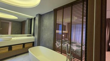 This exclusive island villas layout spans a generous 115 m², making it a prime real estate investment. With spacious bedrooms and well-appointed bathrooms, these villas for rent offer both comfort and elegance.